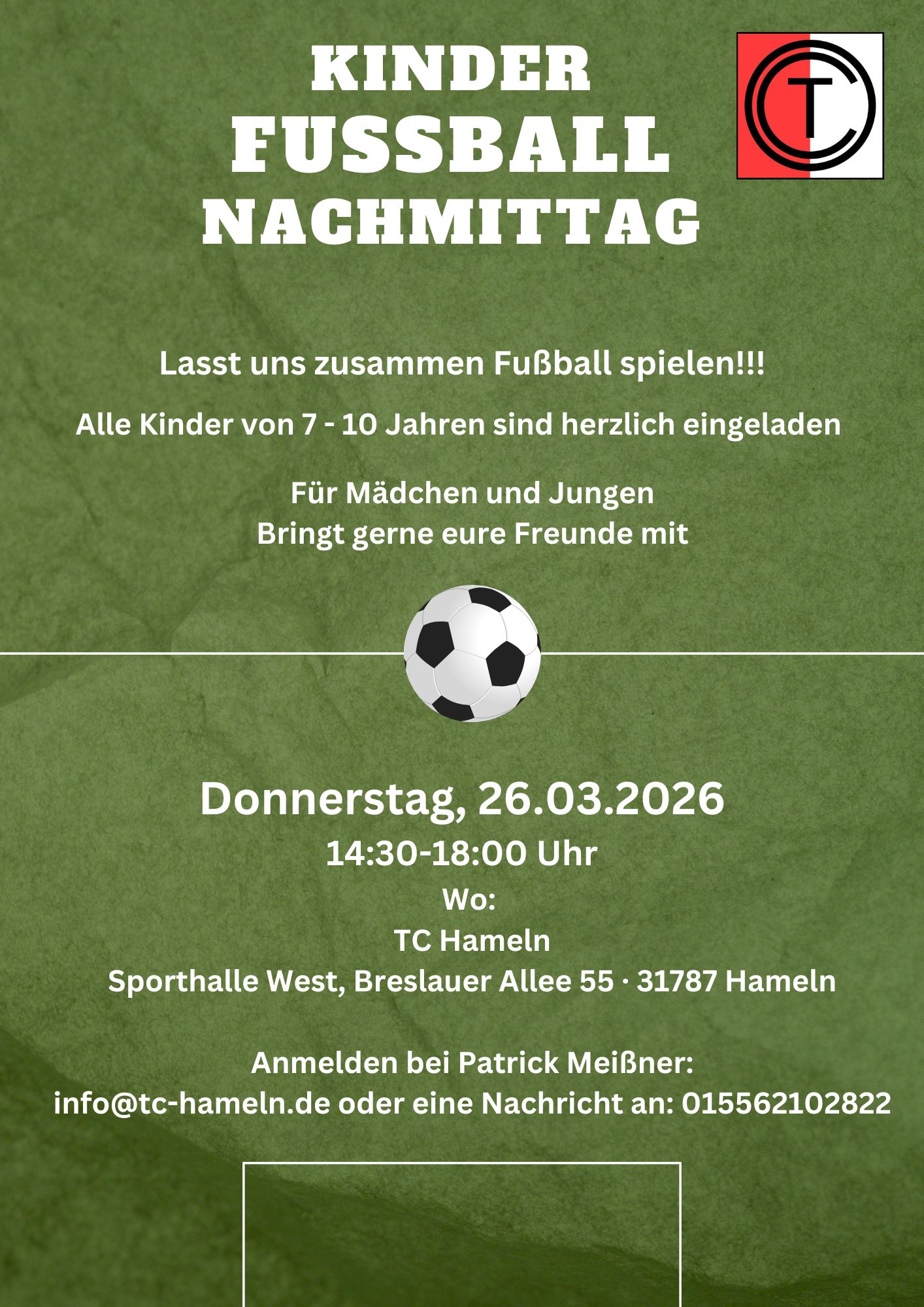 Anmelden unter:patricksport@tc-hameln.de