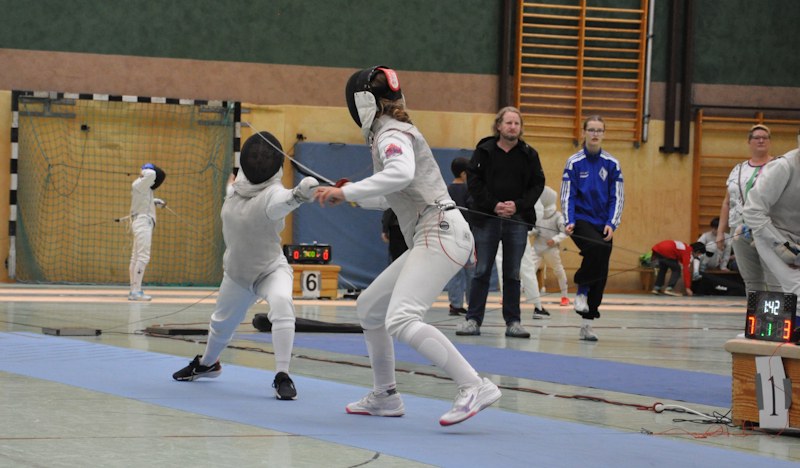 Beim zeitgleich ausgetragenem Ilse-Keydel-Turnier waren Lasse Klages und auch der Trainer Axel Klages am Start. Während Lasse mit seinem Losglück in der Vor- und Zwischenrunde haderte und schwere Gegner hatte, freute sich Axel über seins und verlor nur ein Gefecht. Somit war Lasse für die Direktausscheidung an Platz 11 gesetzt und Axel an Platz 3. Während Axel sich souverän gegen Frederic Hoffmeister aus Braunschweig in der ersten Runde der Direktausscheidung durchsetzen konnte, traf Lasse gleich auf den starken Jost Maison aus Winsen. Lasse zeigte eine kämpferisch tolle Leistung, musste sich aber letztendlich mit 15:7 geschlagen geben. In der nächsten Runde trafen dann Axel und Jost Maison aufeinander. Am Anfang konnte Axel das Gefecht noch offen gestalten, aber dann ließen die Kräfte nach und er verlor ebenfalls gegen den später zweitplatzierten Jost mit 15:7. So erreichte Lasse Platz 11 und Axel Platz 6 in dem starken Starterfeld.