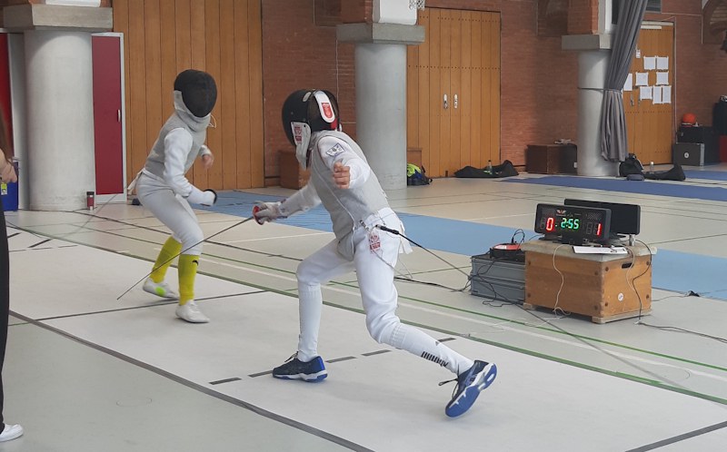 Fechtende vom TC Hameln in Hamburg und Hannover mit guten Ergebnissen am StartDas war ein gelungener Saisonauftakt für Mateja Miowitz. Beim internationalen Hansepokal Turnier in Hamburg mit Starter*innen aus 7 Nationen konnte sie sich souverän durchsetzen. Bereits in der Vorrunde zeigte sich, dass sie einen Supertag hatte. Sie gewann alle ihre Gefechte deutlich und war für die Direktausscheidung an Platz 1 gesetzt. Mit einem Freilos in der ersten Runde und klaren Siegen gegen Noa Aimée Jenkner aus Hannover und Sofia Schulz aus Dänemark zog sie ins Finale ein. In diesem zeigte sie gegen Elena Breinsborg aus Dänemark ihre Klasse und lies ihrer Gegnerin beim 10:2 Sieg keine Chance. „Mateja war heute die ganze Zeit hellwach und zeigte vor allem in der Verteidigung hervorragende Aktionen.“, lobte Trainer Axel Klages seinen Schützling hinterher.