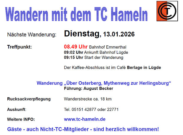 Nächste Wanderung 13.01.2026